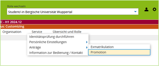 2. Navigieren Sie zu: Service → Anträge → Promotion.